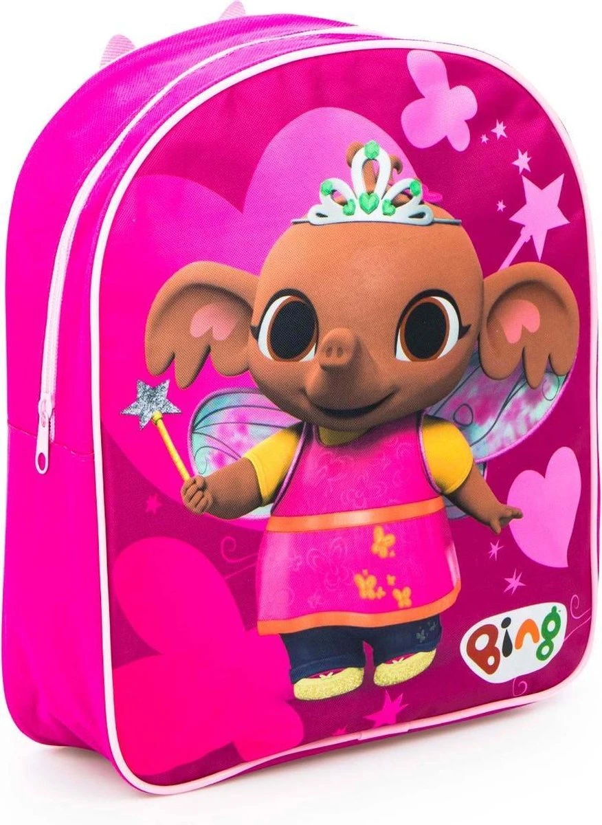 Deze roze rugzak met afbeelding van Sula uit de televisieserie Bing biedt voldoende ruimte voor alle spulletjes voor een dagje school of uit. Het hoofdvak is met rits af te sluiten. De schouderbanden zijn in lengte verstelbaar en zorgen voor optimaal draagcomfort. De rugzak is ook aan de draaglus aan de bovenzijde te dragen.