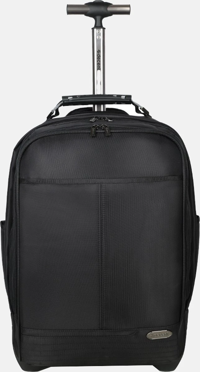 Handbagage formaat rugzak trolley uit de B-To Work serie van Decent. Kan als rugzak of als trolley gebruikt worden. De rugzak heeft 3 vakken met ritssluiting.