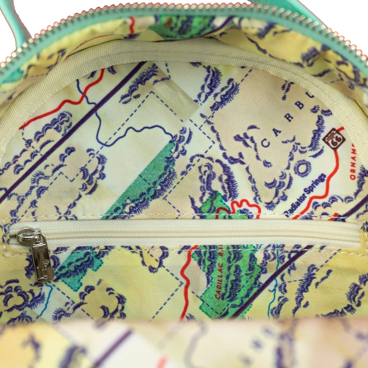 Rugtas Lightning McQueen & Sally Carrera. Prachtige kunstlederen tas uit de Disney Pixar-collectie van het Amerikaanse designermerk Loungefly. De tas heeft een print met Lightning McQueen en z’n geliefde Sally Carrera uit de populaire filmreeks Cars. De tas is verder voorzien van twee verstelbare/afneembare schouderbanden en een bijpassende binnenvoering. Gebruik je 1 schouderband, dan kun je de tas ook gebruiken als crossbody-tas. Verwijder je beide schouderbanden, dan heb je er een leuke handtas van gemaakt.