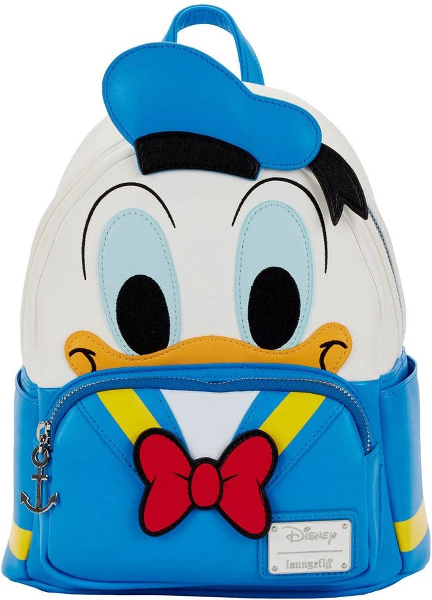 Rugtas Donald Duck Cosplay. Geweldige kunstlederen tas uit de Disney-collectie van het Amerikaanse designermerk Loungefly. De tas heeft het uiterlijk van ’s werelds beroemdste eend… Donald Duck! Het voorvakje heeft een ritssluiting. Aan de ritssluiting is een hanger in de vorm van een ankertje bevestigd. Verder is de tas voorzien van twee verstelbare schouderbanden en een bijpassende binnenvoering.