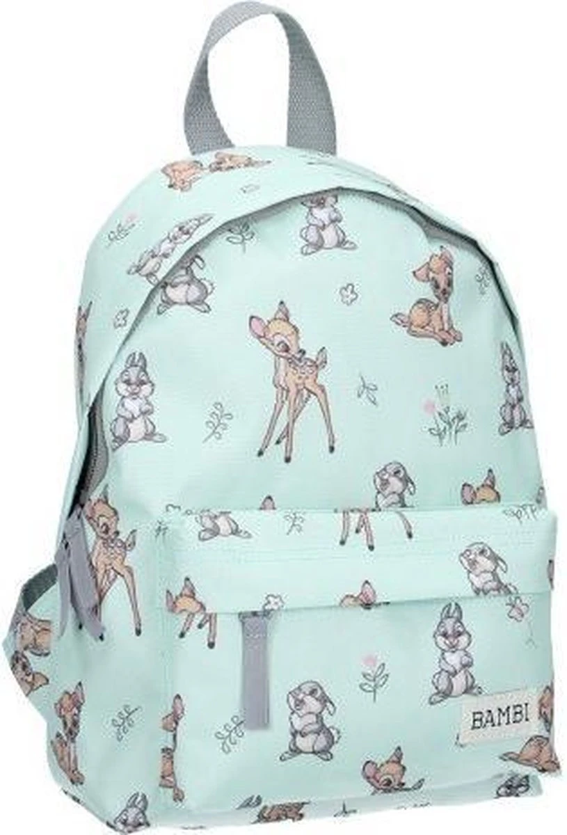 Deze schattige rugzak wordt geleverd in een rijke muntgroene kleur, gecombineerd met kleine Bambi’s en de Bunny Thumper! De tas heeft een ruim hoofdcompartiment en een voorvak met rits.