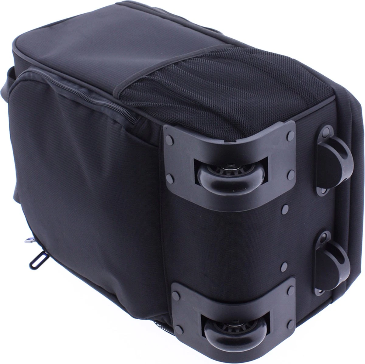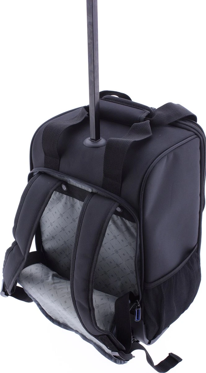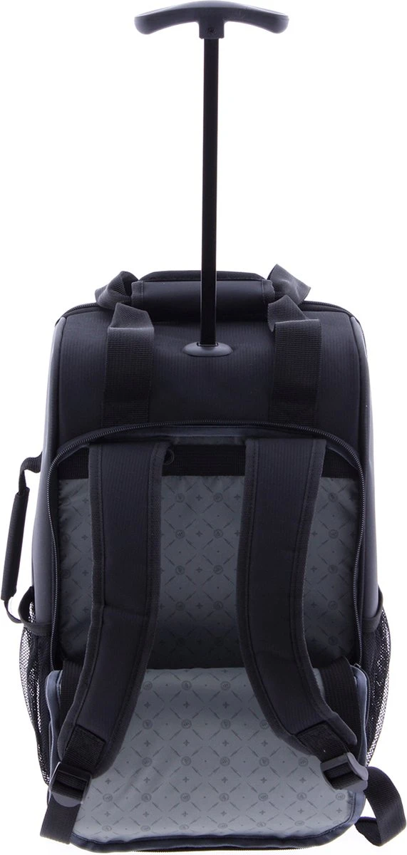 Handbagage formaat rugzak trolley uit de Trick serie van Gladiator. Kan als rugzak maar ook als trolley worden gebruikt. Tas bestaat uit een groot hoofdvak met spanbanden voor uw bagage en tevens zit hierin een laptopvak voor een 15 inch laptop. Op de zijkant zit een stevig handvat waarmee je de trolley kunt oppakken. Aan de bovenzijde zitten twee handvatten die je aan elkaar kunt vastzetten middels een lus met klittenband. Met deze handvatten draag je deze rugzak trolley comfortabel in de hand. Op de achterzijde zitten twee verstelbare schouderbanden waarmee je deze trolley op je rug kunt dragen en je handen lekker vrij hebt. De uitschuifbare trekstang en 2 soepele wielen zorgen voor optimaal reiscomfort. Door de compacte afmetingen is dit een ideale reistas om mee te nemen als handbagage in bijv. het vliegtuig.