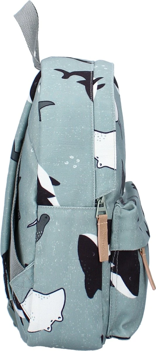 Als dit geen stoere rugzak is? Die wil je kindje vast overal mee naartoe nemen. Deze blauwe rugtas uit de Full of Wonders collectie is bedrukt met leuke zeedieren zoals roggen, orka’s en haaien. De rugzak heeft een handig voorvak met een rits met ruimte voor de kleinere spulletjes die mee moeten. Het grote hoofdvak heeft een handige dubbele rits en biedt ruimte voor bijvoorbeeld een broodtrommel of extra setje kleding. Handig als je kindje de rugtas mee naar school neemt. De rugzak is te dragen aan de lus aan de bovenkant of op de rug met de verstelbare schouderbanden.