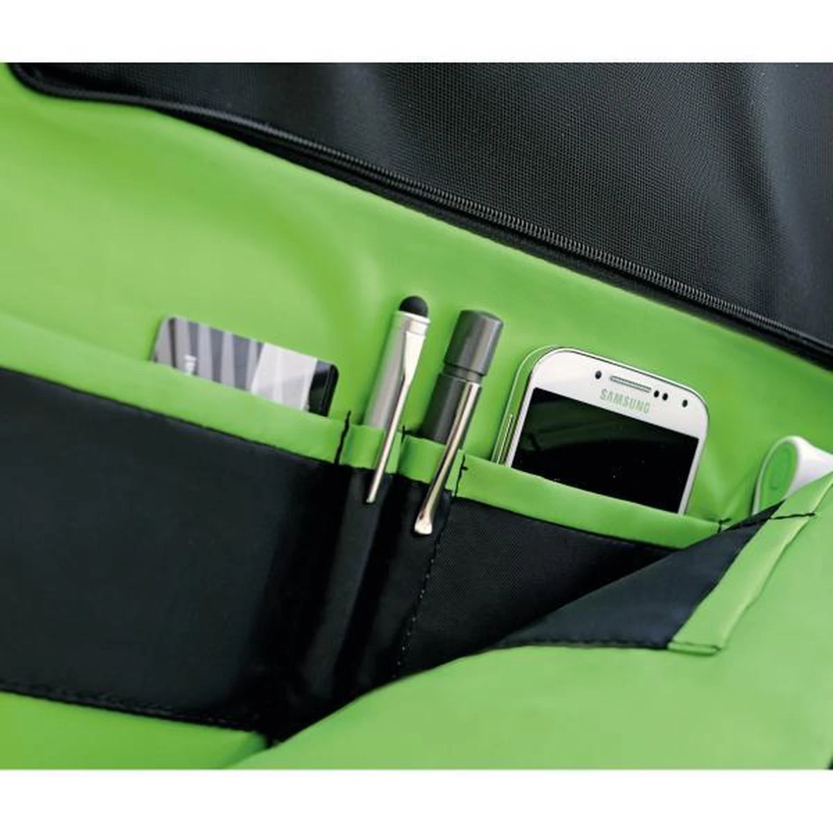 Kwaliteit lichtgewicht ruime en uitbreidbare business rugzak met twee hoofdcompartimenten en een kleiner voorvak. Opvallend en elegant design met rits en elegante matte metalen gespen. Zwarte buitenkant met opvallend groen interieur dat het makkelijker maakt om objecten terug te vinden. Ruimte voor alle mobiele apparaten, 15.6 inch laptop en documenten tot A4 formaat. Makkelijk te dragen dankzij lederen handvat verstelbare schouder- en borstriem of te bevestigen aan uw trolley.Eigenschappen- Lichtgewicht robuust polyester voor comfortabel dagelijks gebruik- Aircontact rugsysteem- 20 vakken inclusief tablet hoes gestoffeerd met fleece om je scherm en andere oppervlakken van je apparaten te beschermen met zijvak voor flesjes of paraplu- Extra snelle toegang tot het voorvak voor je mini tablet of ebook reader- Smart functies inclusief reinigingsdoekje en sleutelhouder- Apart verwijderbaar vak voor je oplader en kabels- Handige doorkijk vakken van gaas voor kabels en kleine accessoires- Gestoffeerd tablet en ultrabook vak gestoffeerd met fleece om je scherm en andere oppervlakken van je apparaten te beschermen- Hoes voor zonnebril of gsm aan de voorkant voor gemakkelijke aansluiting met oordopjes