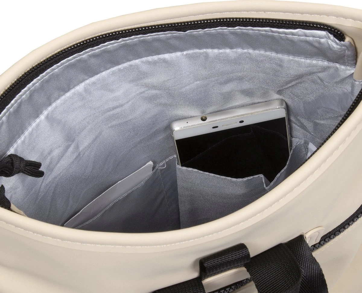 Deze trendy waterafstotende rugtas draagt comfortabel door het lichtgewicht en de gewatteerde schouderbanden. Toch behoudt deze rugzak zijn charme door de fijne vormgeving. Het hoofdvak is eenvoudig te vergroten of verkleinen door het oprol gedeelte aan de bovenkant. Hierdoor kun je tot 10 cm meer ruimte creëren. Het hoofdvak is afsluitbaar met een stevige rits en een gespsluiting die als een zwarte strook doorloopt in het design. In het zilverkleurige hoofdvak zitten twee insteekvakjes en een ritsvakje voor bijvoorbeeld je telefoon. Op de voorkant en achterkant van de rugzak zit ook een extra ritsvak, handig voor kleine spullen waar je snel bij moet kunnen. Het stevige handvat zorgt ervoor dat de tas eenvoudig op te pakken en op te hangen is. Deze New Rebels tugtas beschikt over: * Waterproof PU materiaal * Rolltop aan de bovenzijde met gespsluiting * Een hoofdvak met ritssluiting (9L bij volledig uitrollen) * Twee binnenvakjes * Binnenvak met ritssluiting * Voorvak met ritssluiting * Achtervak met ritssluiting * Verstelbare en gewatteerde schouderbanden * Handvat * Reflectiestrip