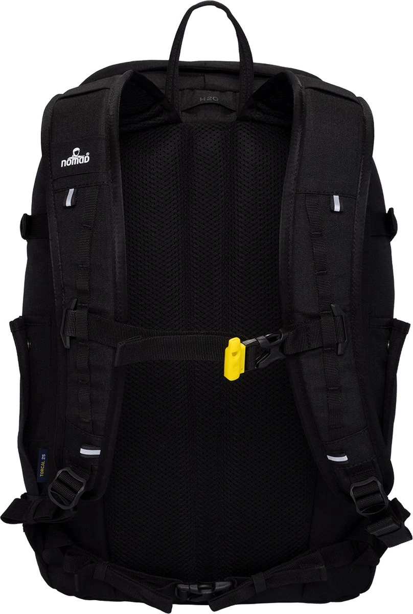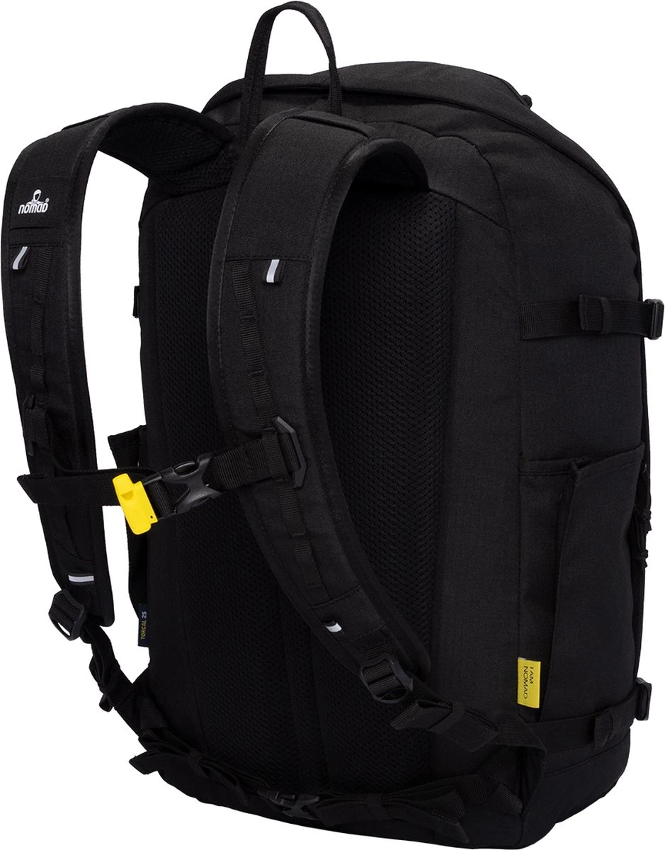 De schouderbanden van de IGWT x NOMAD® Backpack zijn gepolsterd met zacht schuim voor extra draagcomfort. Aan de schouderbanden vind je een borstbandje met een handig veiligheidsfluitje die je kunt gebruiken in geval van nood. Het borstbandje is gemakkelijk te verstellen en los te koppelen, mocht je ‘m niet nodig hebben. Ga je aan de wandel? De IGWT x NOMAD® Backpack heeft een verstelbaar en afneembaar heupbandje die ervoor zorgt dat hij op z’n plek blijft zitten als je beweegt. Het rugpand van deze rugzak is uitgerust met dik, gepolsterd schuim waardoor de rugzak zacht op je rug rust. Door de open structuur van het rugpand wordt warmte en vocht effectief afgevoerd.
