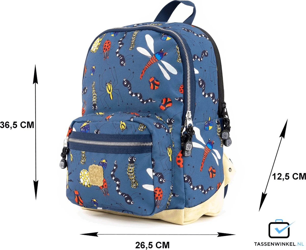 De Pick & Pack Insect rugzak is een stoere kinder rugzak met insectenprint van zeer goede kwaliteit. De rugzak heeft handige opbergmogelijkheden en is handig om te gebruiken voor school, op reis en voor een heleboel andere activiteiten! Er is voldoende plek in de tas voor een lunchdoos, drinkfles en gymspullen. Door het hengsel boven aan de tas is hij gemakkelijk op te hangen aan een kapstok.