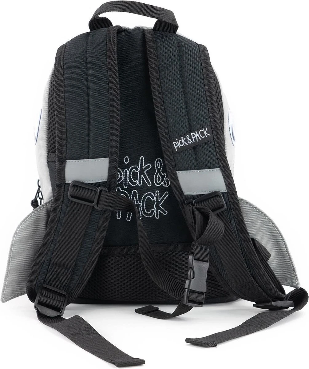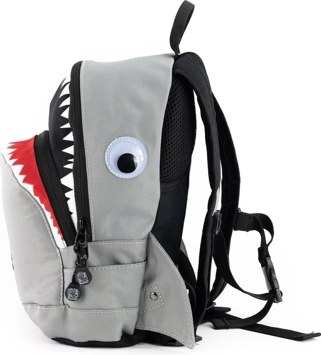 De Shark Shape Backpack is een stoere rugzak van Pick & Pack in de vorm van een haai speciaal ontwikkeld voor kinderen en gemaakt van een zeer goede kwaliteit. Deze rugzak heeft handige opbergmogelijkheden en er is voldoende plek voor een lunchdoos, een flesje drinken en gymspullen. De schouderbanden zijn gewatteerd en verstelbaar. Hierdoor voelen ze comfortabel aan en stel je de rugzak eenvoudig af op de gewenste lengte. Zo zorg je ervoor dat jouw kind geen last krijg van zijn of haar rug. Aan de bovenzijde zit een hengsel waaraan ze de tas op school gemakkelijk ophangen aan de kapstok. Let goed op de afmetingen, dit is een kleine rugzak.