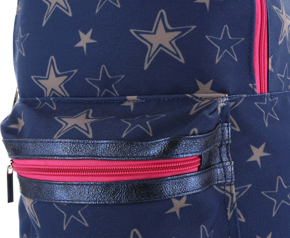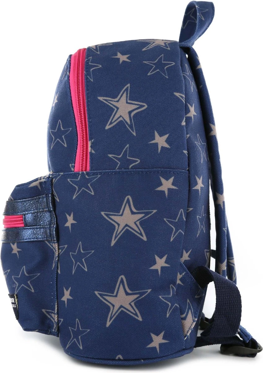 We zien sterretjes! Deze toffe Shoesme rugzak, uitgevoerd in blauw canvas, heeft over heel de tas allerlei sterretjes, in een lichtgrijze kleur. Leuke tas voor op het schoolplein!