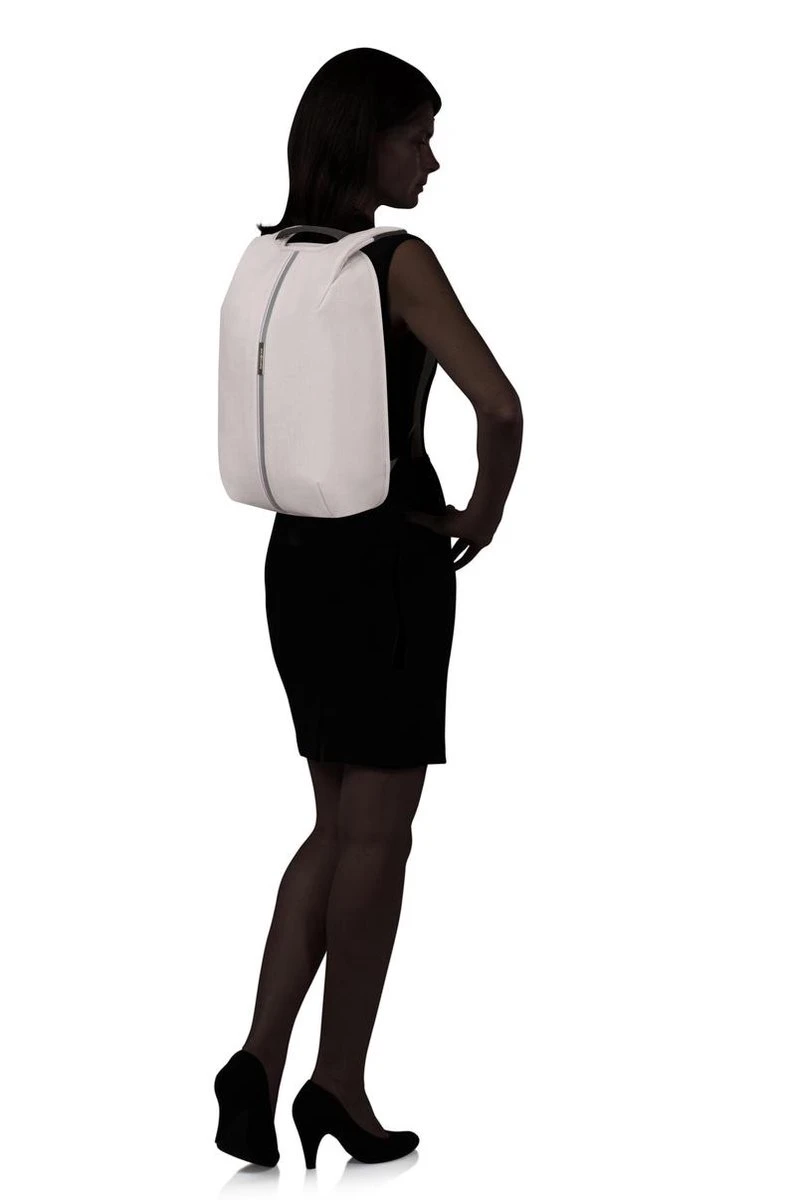 “Securipak S komt eraan! Een rugzak waarmee je veilig de weg op kunt, want de anti-diefstal collectie combineert stijl met veiligheidsfuncties. Zo is het hoofdvak enkel toegankelijk via de achterkant, het materiaal is snijbestendig en ecologisch, en de binnenkant is perfect georganiseerd voor zakenvrouwen. De reflecterende vrouwelijke details en de USB-poort maken het plaatje compleet.