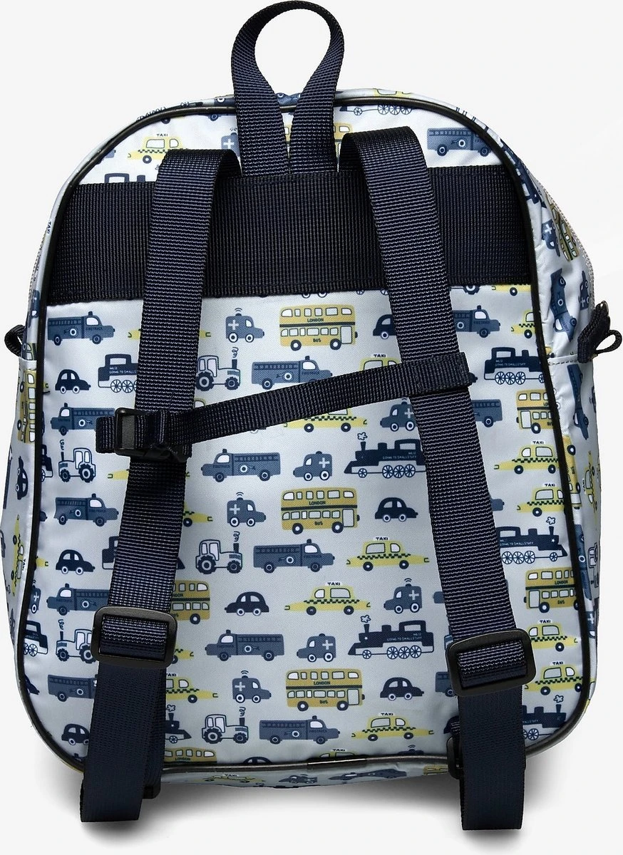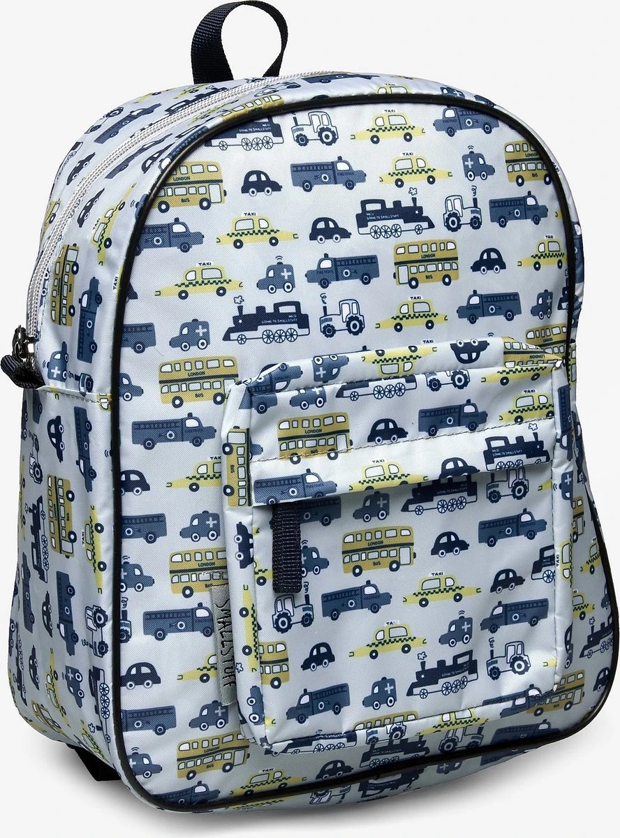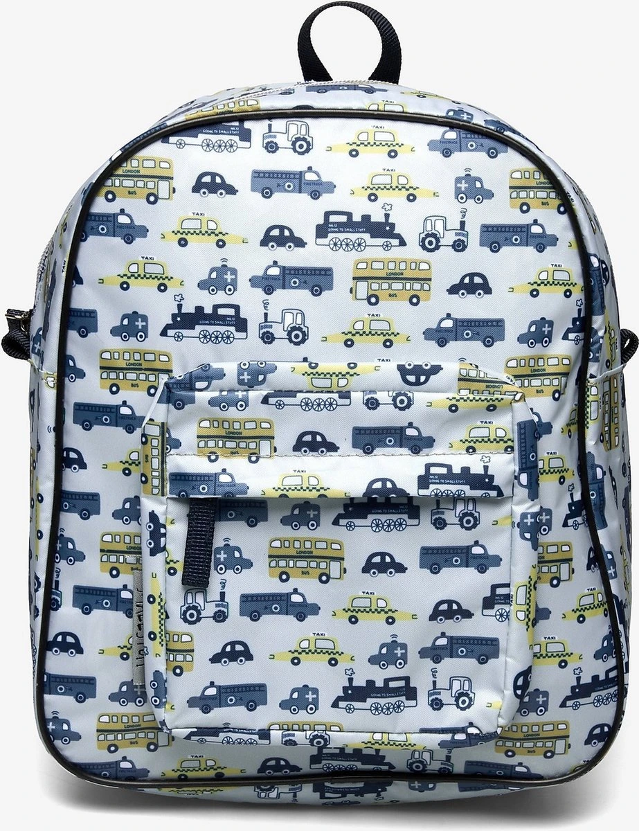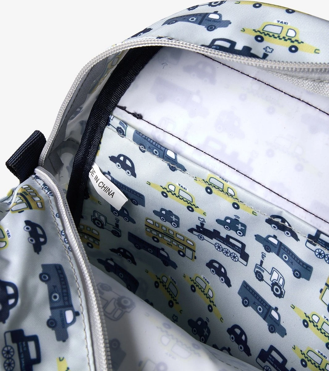 kinder rugzakje lichtblauw / lichtgrijs met tractoren voertuigen afbeeldingen print