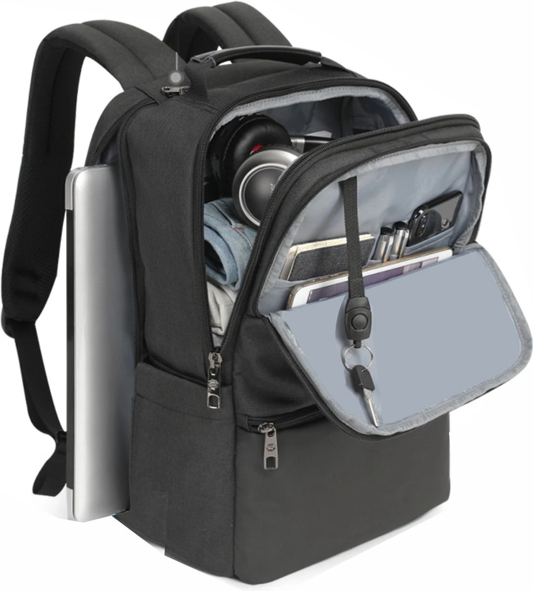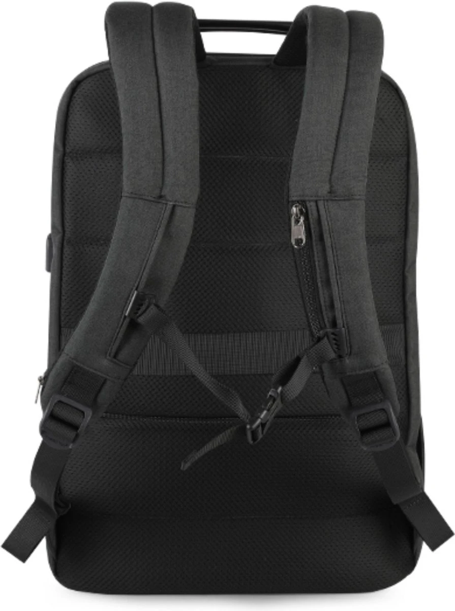 De laptoptas is voor het grootste gedeelte gemaakt van polyester, dit zorgt ervoor dat de laptoptas stevig voelt en tegen een stootje kan. De rugzak is fraai afgewerkt en is compact, zo kan je hem bijvoorbeeld meenemen als handbagage in het vliegtuig. Door de vele verschillende vakken kan je alsnog veel spullen kwijt.