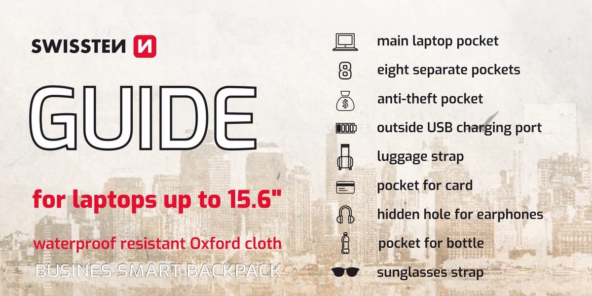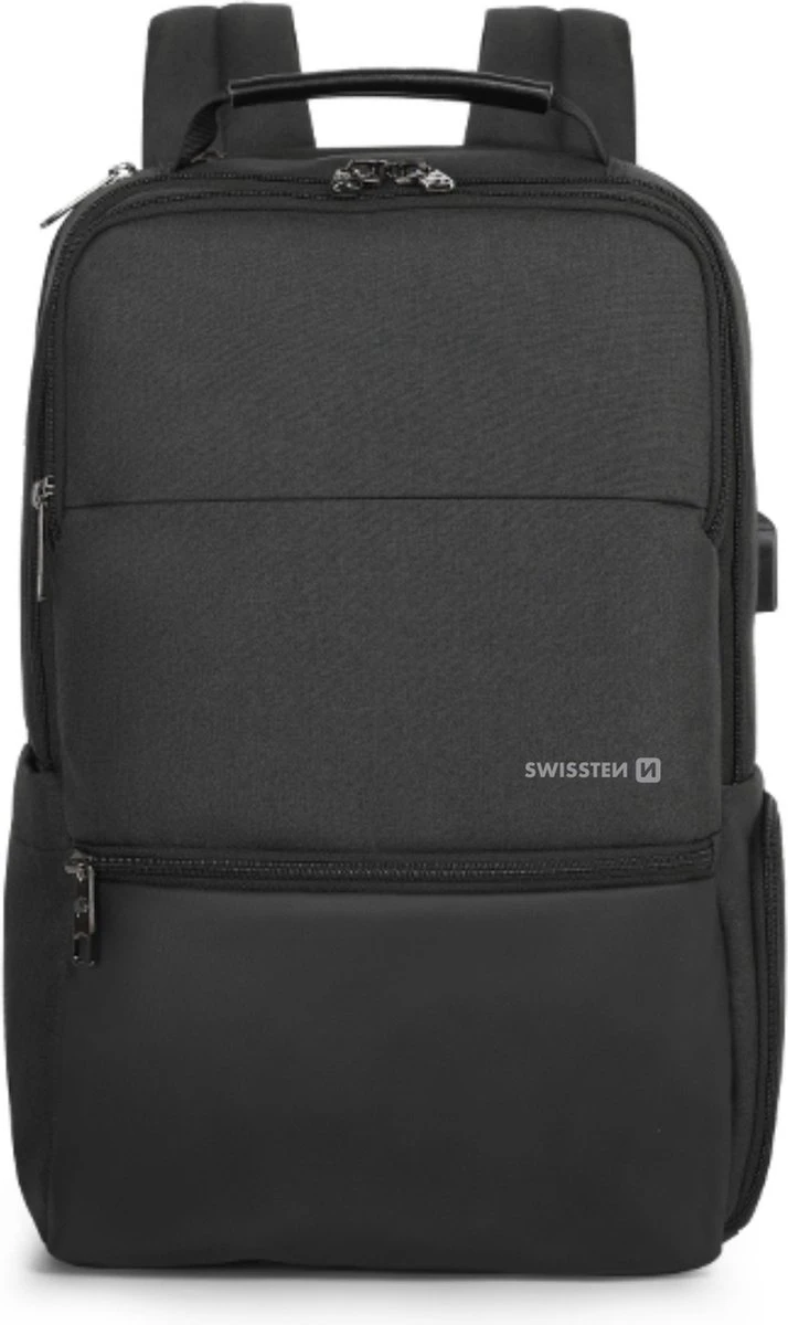 De zwarte Swissten laptoptas is geschikt om laptops t/m 15.6 inch mee te nemen als je op reis gaat of de deur uit gaat. Er zit een handige USB-poort aan de zijkant van de tas en er is een speciaal gaatje voor snoertjes van koptelefoons. De laptoptas is waterbestendig en is voorzien van een anti-diefstal slot aan een van de ritsen.