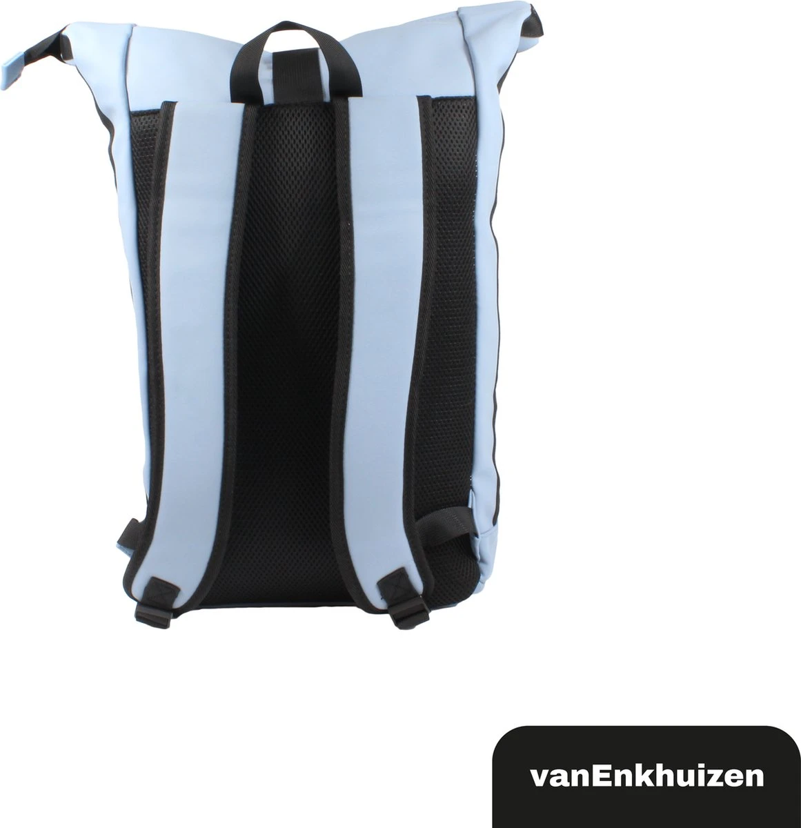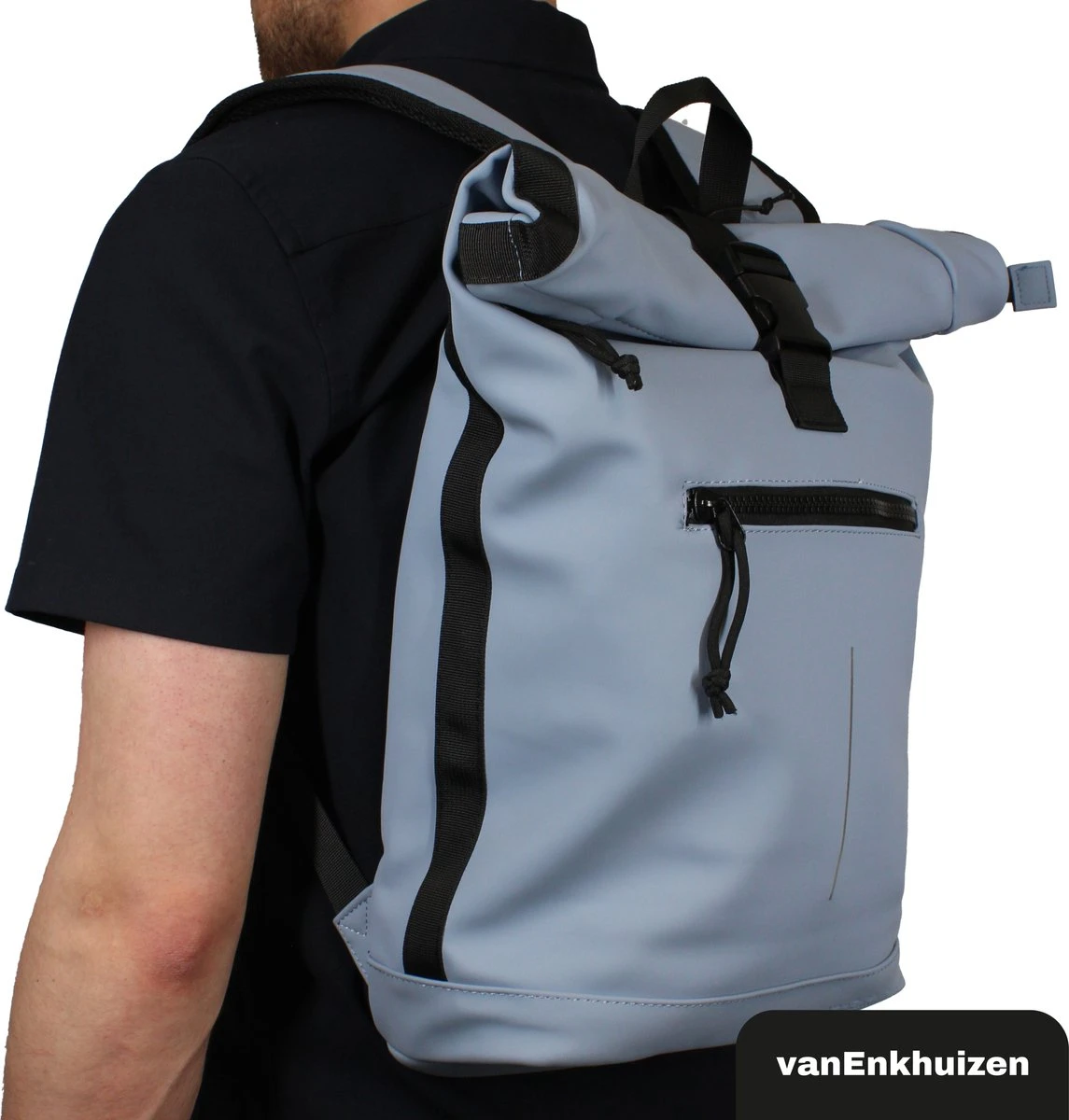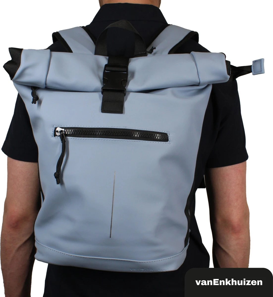 Neem je spullen overal mee naartoe in deze stijlvolle van Enkhuizen Rolltop Rugzak voor dames en heren. Maak de rugtas groter en kleiner door de sluiting op of uit te rollen. Het laptopvak biedt ruimte aan een 15,6 inch laptop, die droog blijft via het waterafstotende Tarpaulin. Houdt je spullen warm of koud dankzij de thermo binnenzijde en gebruik de ritsvakken om kleine spullen weg te stoppen. Veilig de weg op in het donker is geen probleem door de reflectie strip op de rugzak. De gewatteerde schouderbanden zorgen voor ideaal draagcomfort, waardoor deze handige tas onmisbaar wordt.