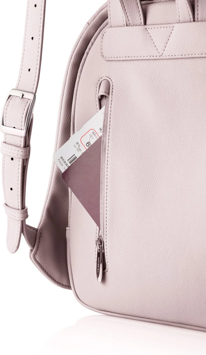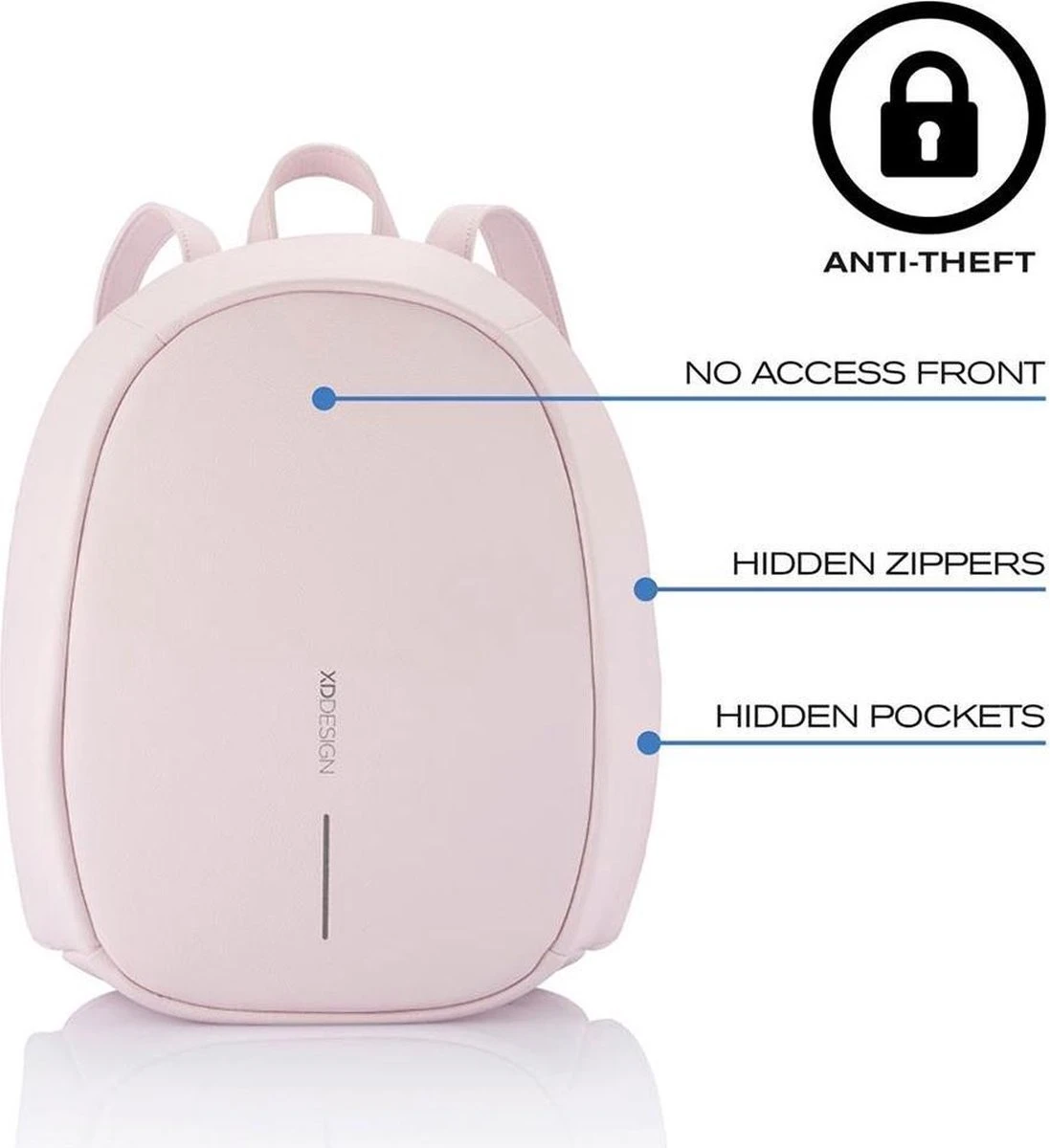 XD Design Bobby Elle Anti-diefstal Rugzak Roze, deze roze rugzak heeft een fraai design en is gemaakt van hoogwaardig polyester. Dit materiaal is snijvast, waardoor dieven de tas moeilijk kunnen opensnijden. Ook is het materiaal waterafstotend. De anti-diefstal rugtas heeft voor je veiligheid in het donker meerdere reflecterende details. Deze XD Design Bobby Elle rugzak is comfortabel op de rug te dragen door de verstelbare en gewatteerde schouderbanden, door het stevige handvat is de tas ook makkelijk op te pakken of in de hand te dragen.Aan de buitenkant heeft deze XD Design rugtas diverse verborgen vakjes, door de verborgen ritsen en compartimenten zijn je spullen altijd veilig opgeborgen en niet bereikbaar voor dieven en zakkenrollers. Het hoofdcompartiment is afsluitbaar met een stevige verborgen ritssluiting, door de wijde opening is dit ruime vak makkelijk toegankelijk. Binnenin heeft deze rugzak een beschermend tablet vak geschikt voor maximaal 9,7 inch tablets. Aan de binnenzijde zitten meerdere vakken en organizers voor het opbergen van kleine spulletjes. Wij zijn officiële XD Design dealer, dus u kunt natuurlijk rekenen op een volledige garantie.